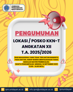 [PENGUMUMAN] DAFTAR PESERTA KKN-T ANGK. XII T.A. 2025/2026 DENGAN HASIL GENERAL TEST DI BAWAH 80%