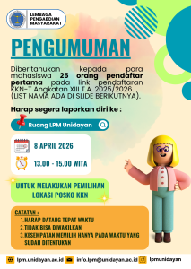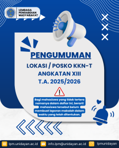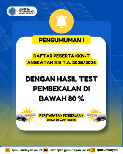 [PENGUMUMAN] DAFTAR PESERTA KKN-T ANGK. XIII T.A. 2025/2026 DENGAN HASIL GENERAL TEST DI BAWAH 80%