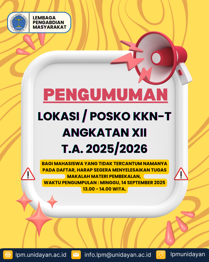 [PENGUMUMAN] LOKASI / POSKO KKN – TEMATIK ANGKATAN XII T.A. 2025/2026 UNIDAYAN